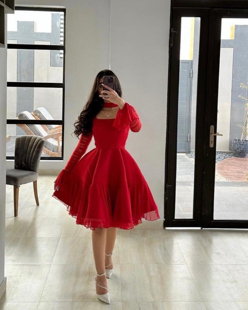 الخامه : تفته احمر رااقي + شيفون ناعم + مبطن جيبون سهرات