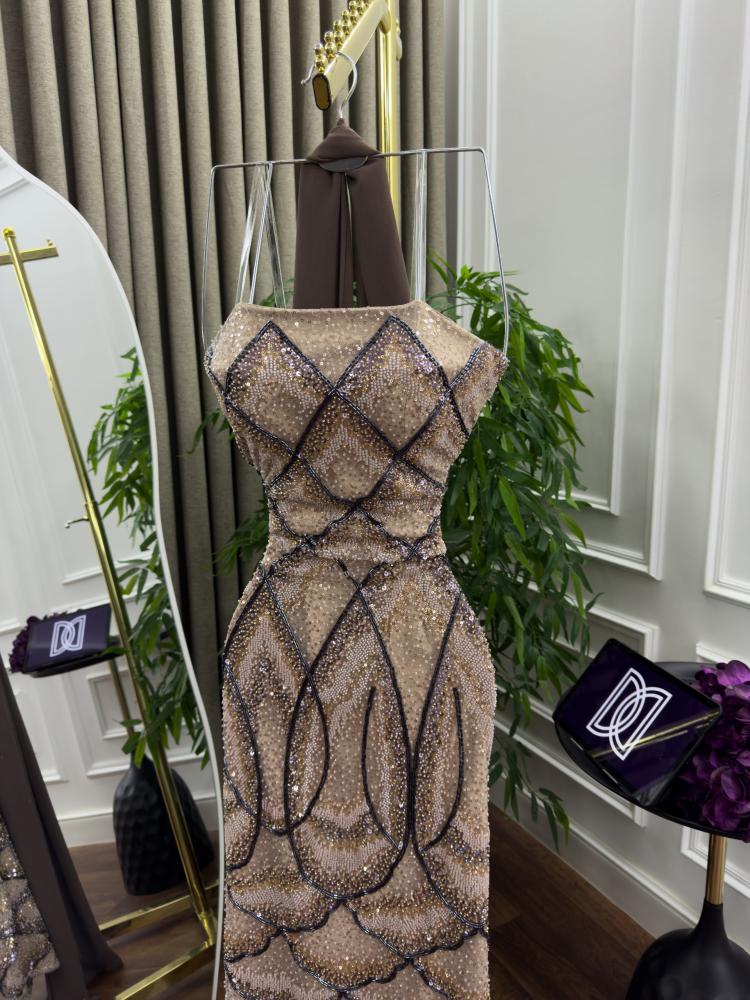 فستان سهره شيفون بكلفة تطريز خرز وشال
