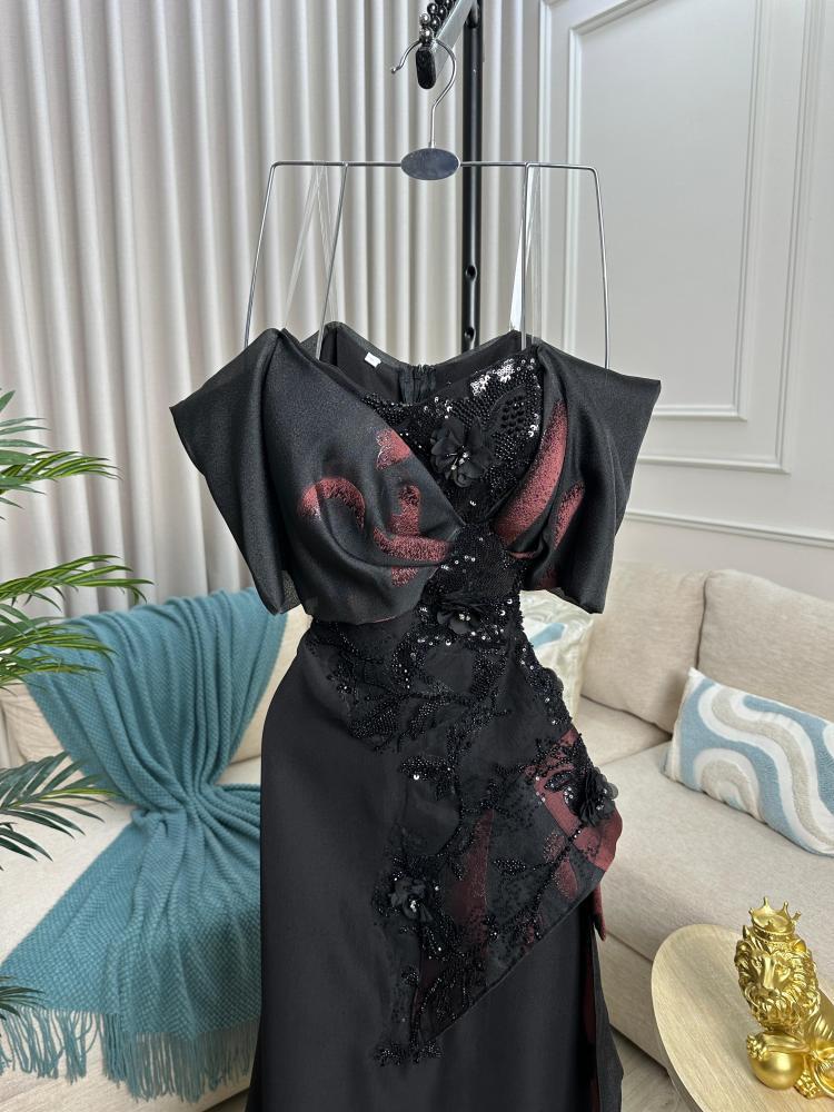 فستان سهره اسود بقماش باربي